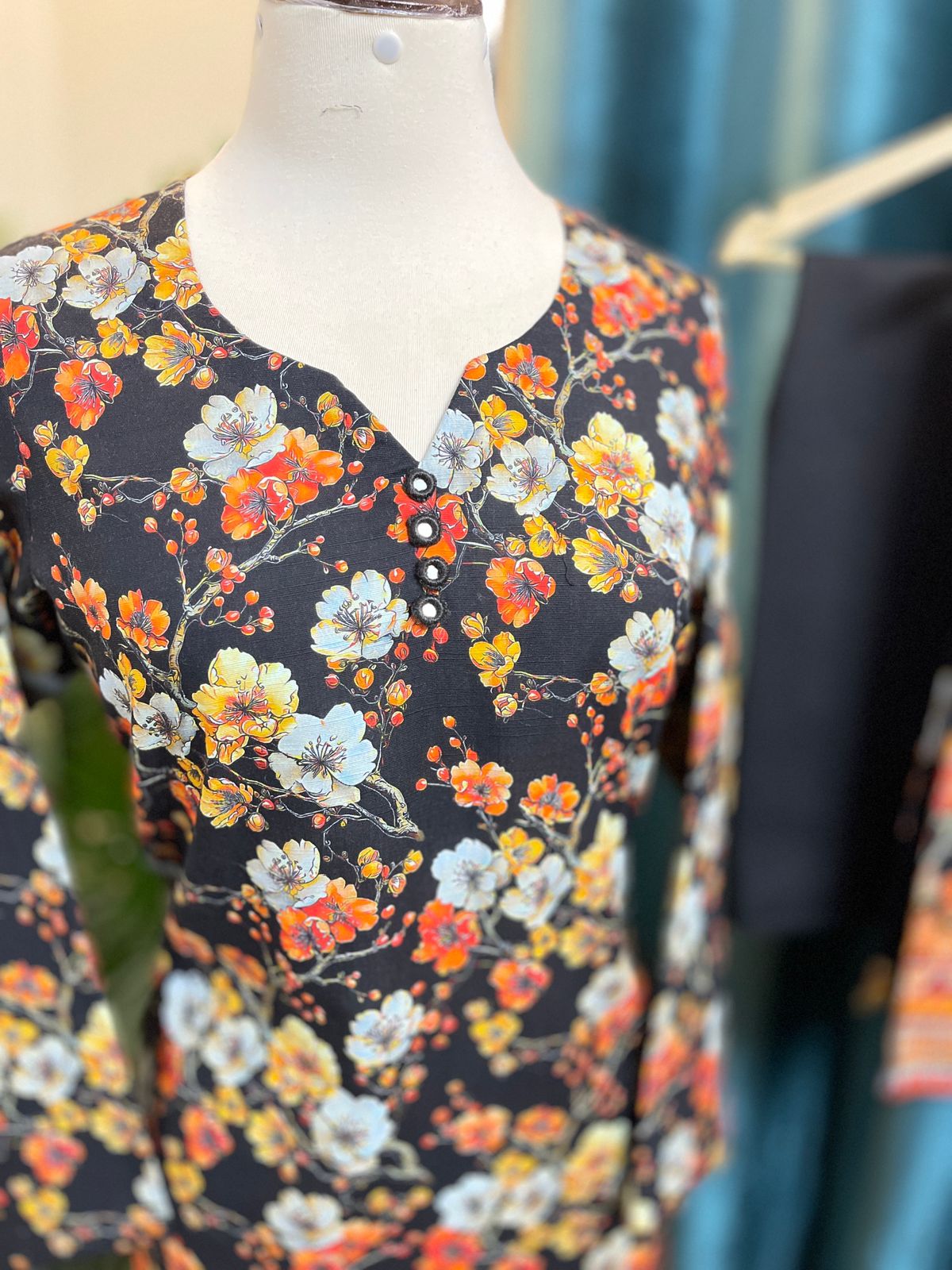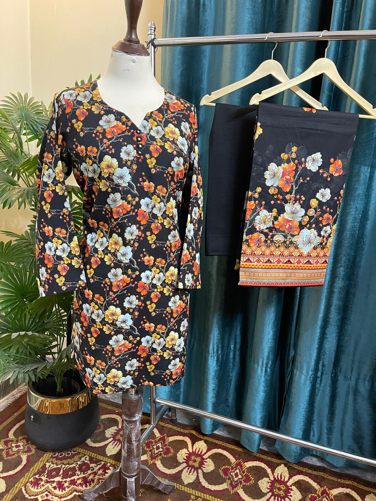 A timeless winter essential designed for effortless elegance. This premium stitched 3-piece suit is crafted from soft and breathable Khaddar fabric, featuring a rich black base adorned with vibrant multicolor floral prints. The digitally printed dupatta adds a refined, modern touch to the overall look.