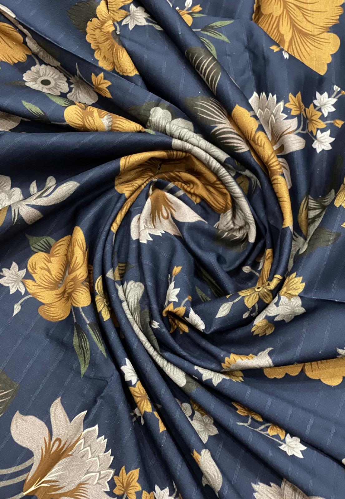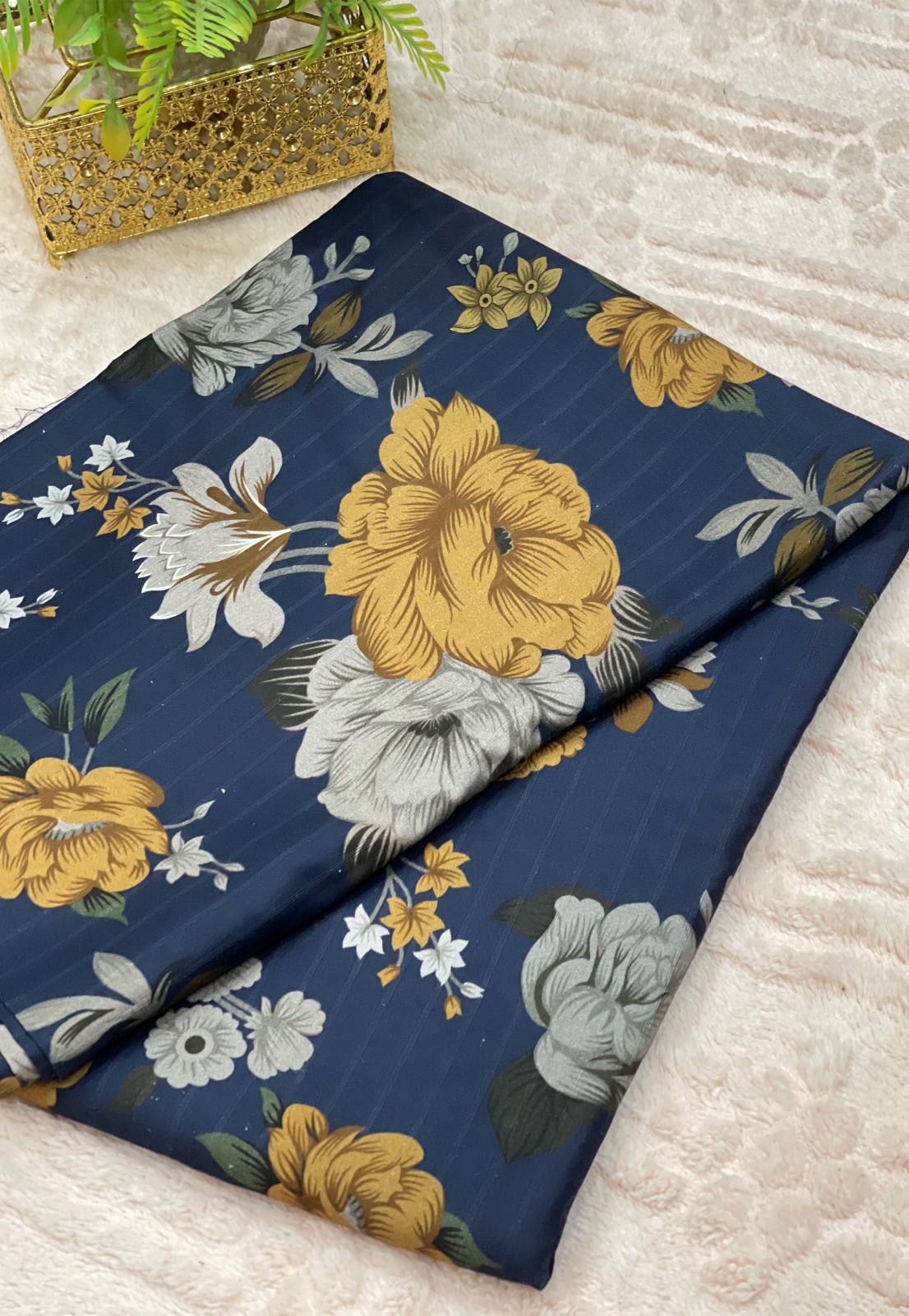 Soft florals on a deep zinc blue base 🍃✨ — our premium unstitched 2-piece suit is crafted from smooth, breathable Doria Lilan fabric. Bold all-over floral prints create an elegant, everyday look with a subtle, graceful touch, perfect for winter styling. Enjoy full tailoring freedom for your ideal fit.