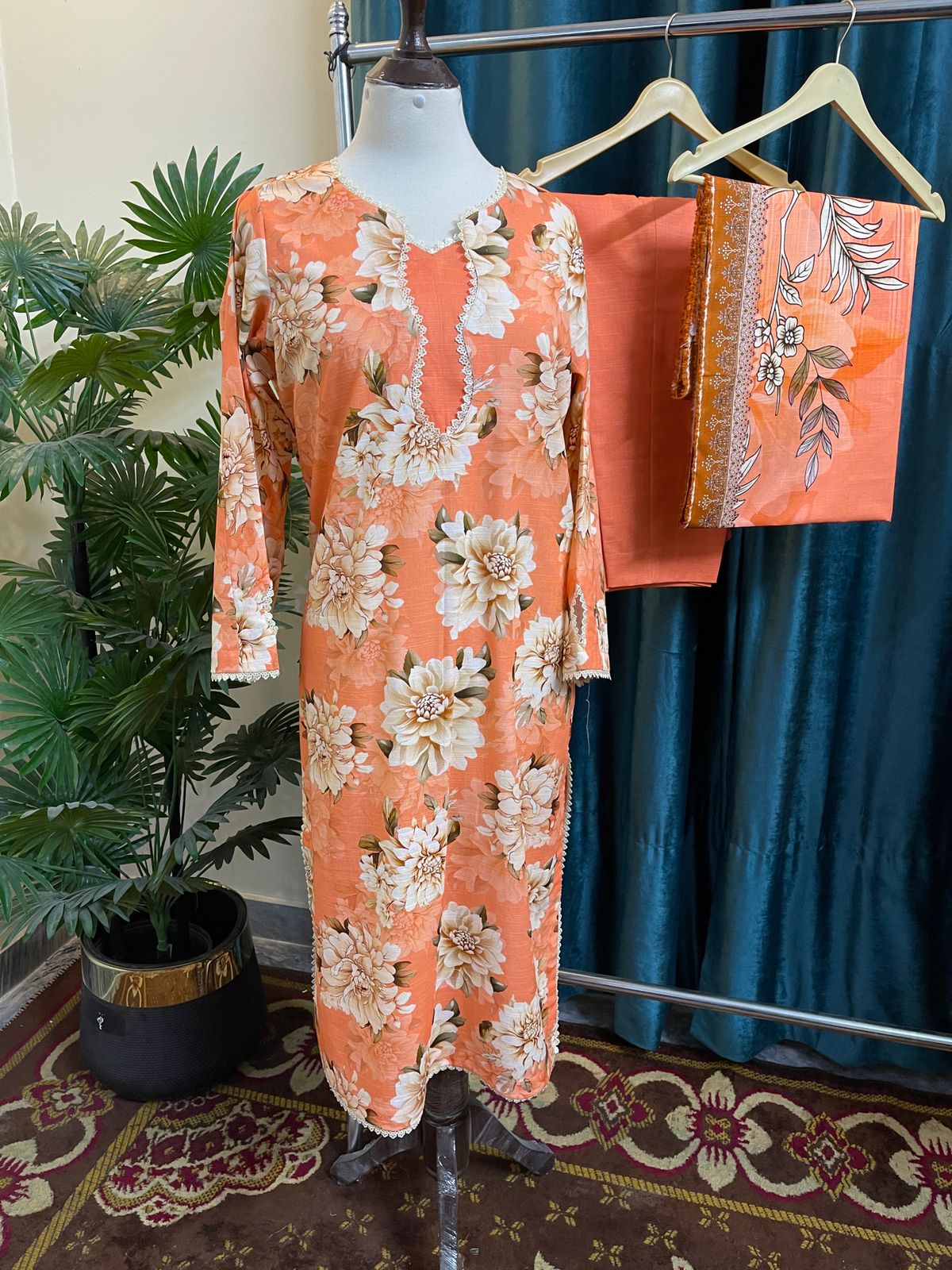 • Color: Soft Peach with Beige Bold Floral & Digital Print Dupatta